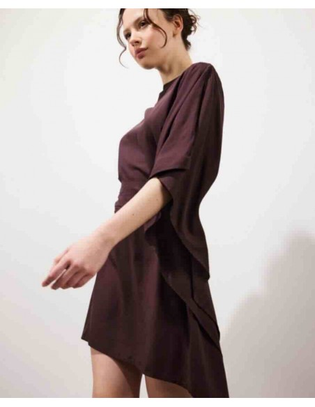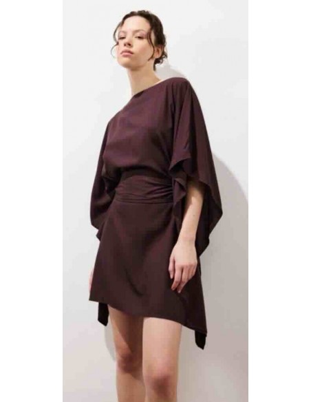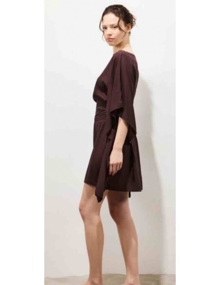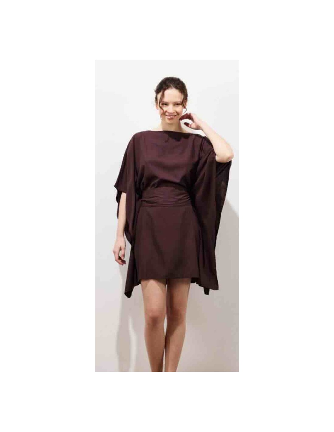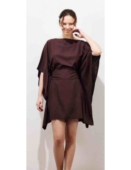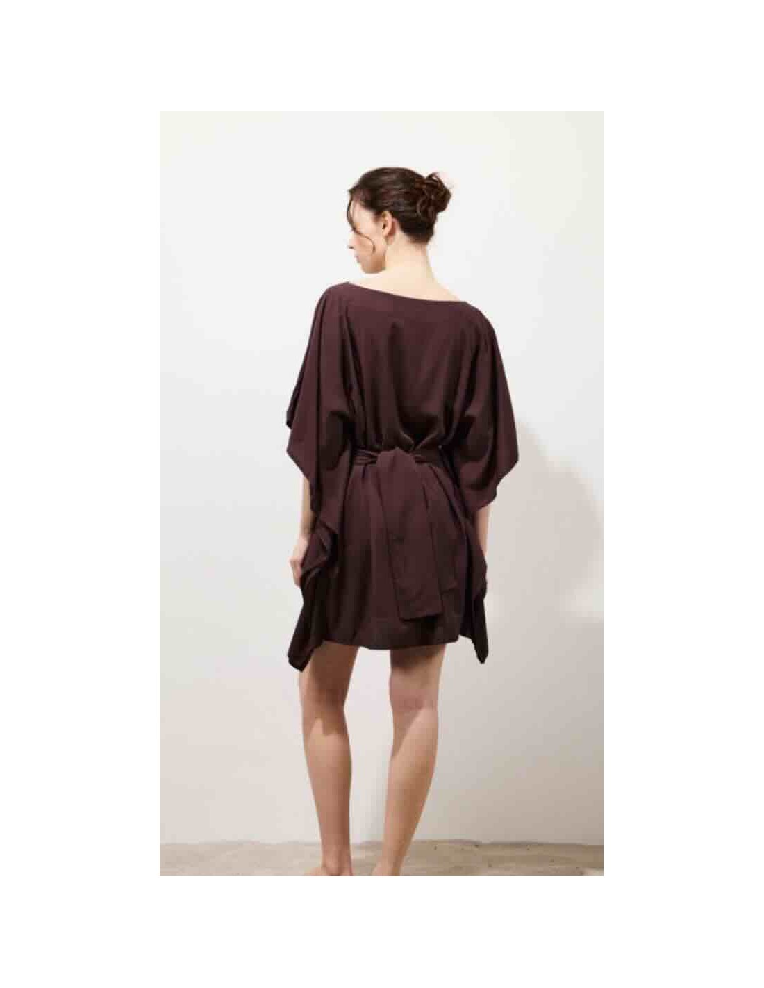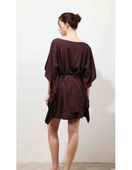 la robe courte KIMONO, une pièce phare de Karma Koma, se démarque par sa coupe ample et ses manches kimono oversize 3/4, qui lui donnent une silhouette fluide et naturellement féminine. Son encolure bateau met en valeur ton allure. Une large ceinture amovible, confectionnée dans le même tissu, te permet de la nouer de différentes manières. Faite en rayonne légère, elle t'accompagne tout l'été avec douceur et fluidité. C'est une pièce facile à porter, pensée pour profiter pleinement de la saison.