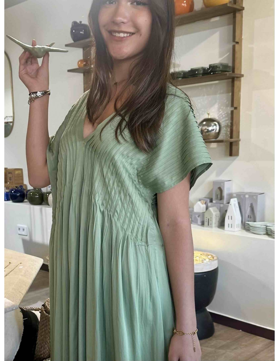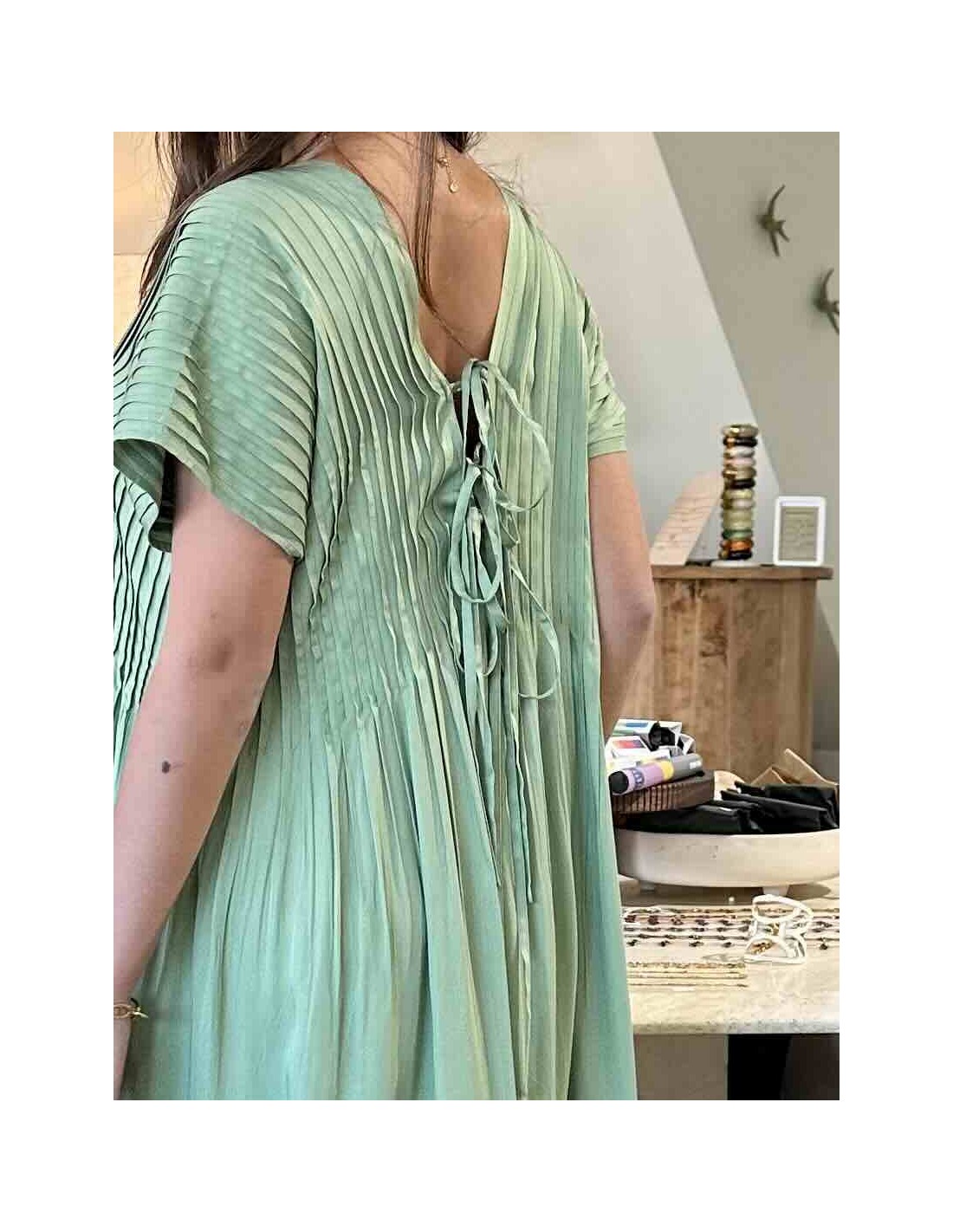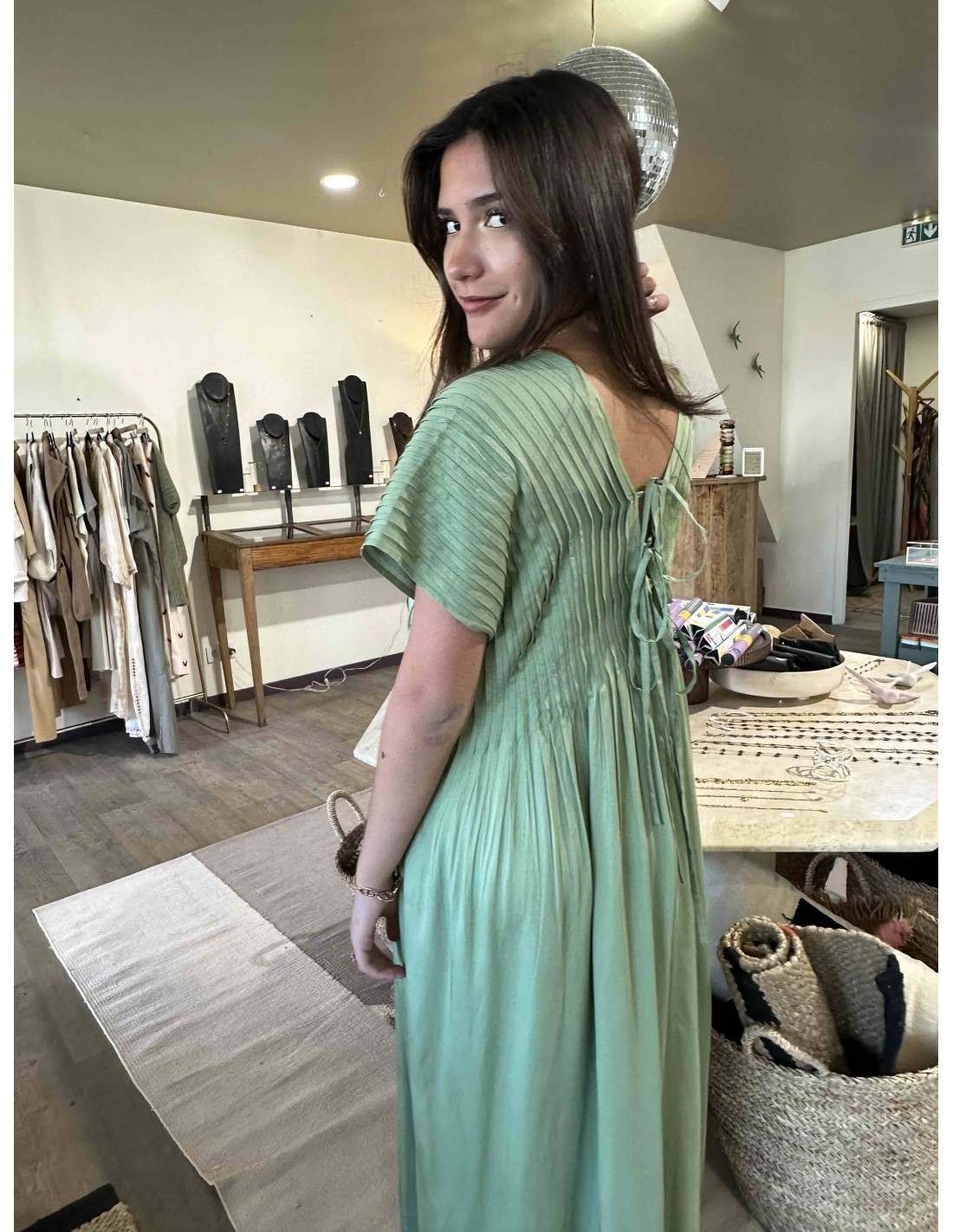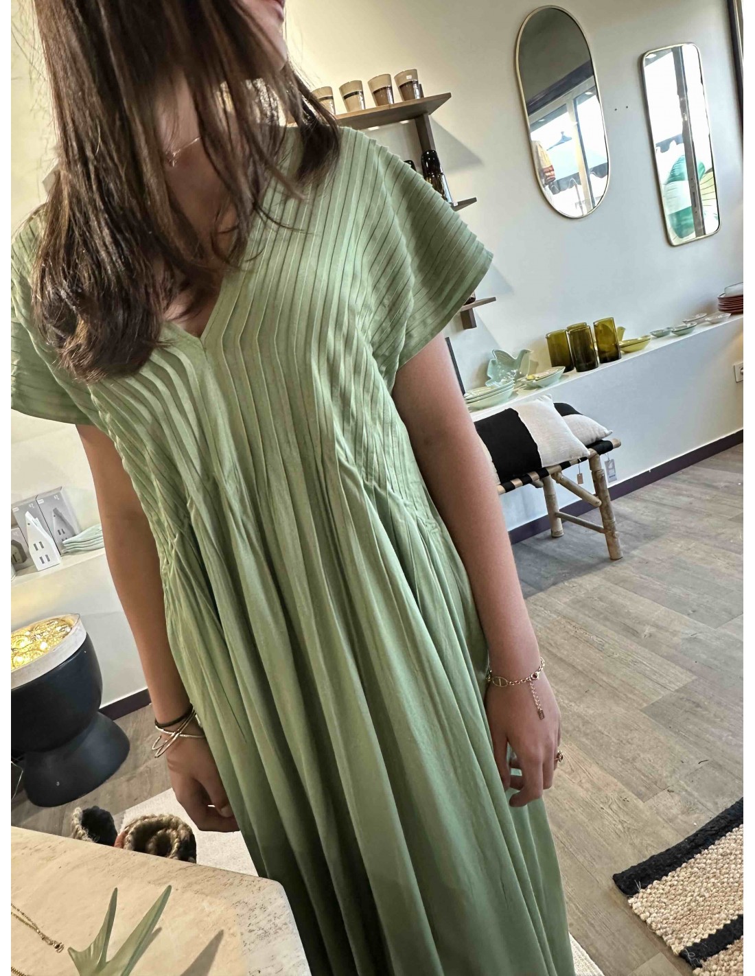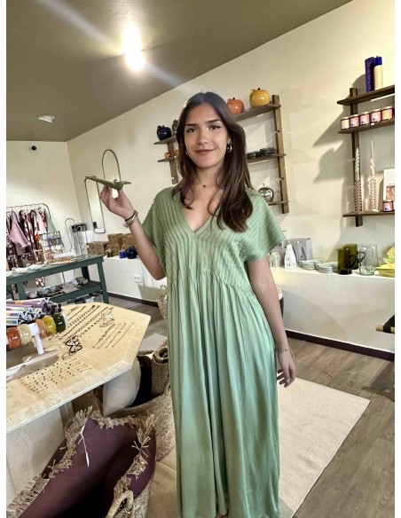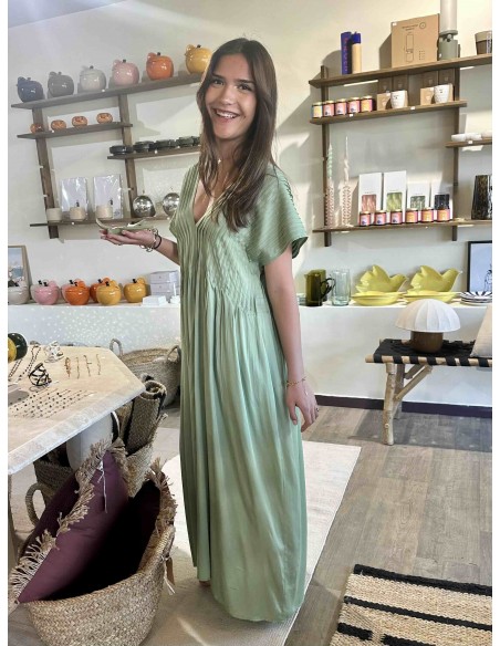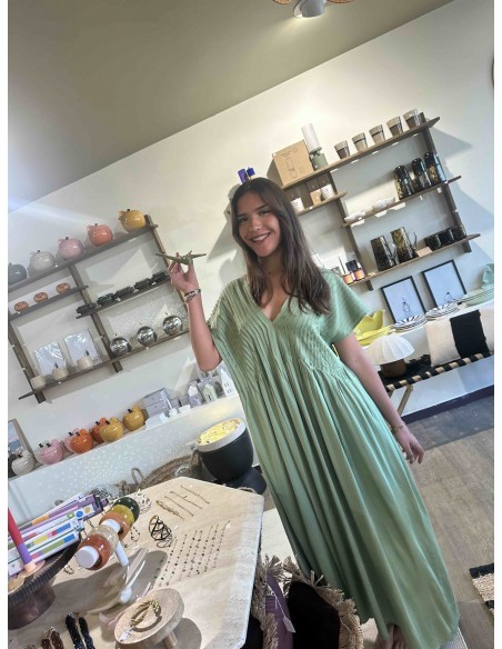 La robe vert d'eau Louizon, une ode à la féminité et à la légèreté. Sa couleur, un doux reflet des eaux cristallines, évoque la sérénité et la fraîcheur. Sa coupe, savamment travaillée, met en valeur la silhouette avec élégance et grâce. Le tissu, léger et vaporeux, caresse la peau et crée un mouvement aérien à chaque pas. Les détails délicats et discrets, signature de la marque, ajoutent une touche de raffinement subtil. C'est la robe idéale pour celles qui recherchent un style bohème chic, parfait pour les journées ensoleillées ou les soirées d'été.