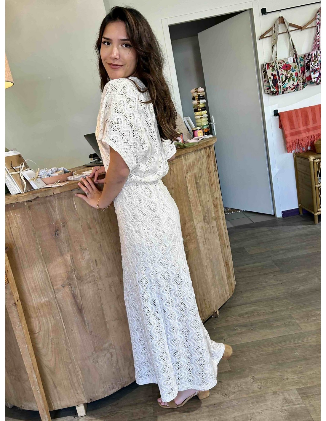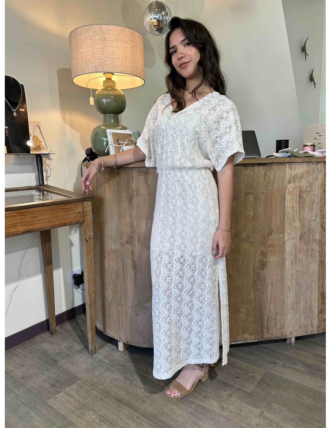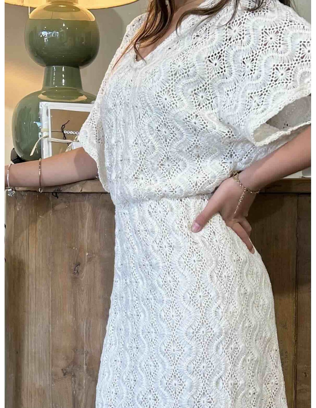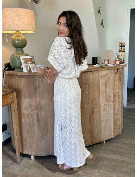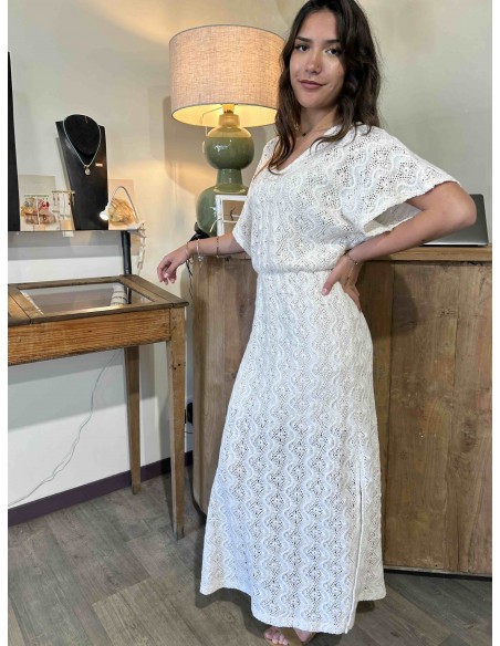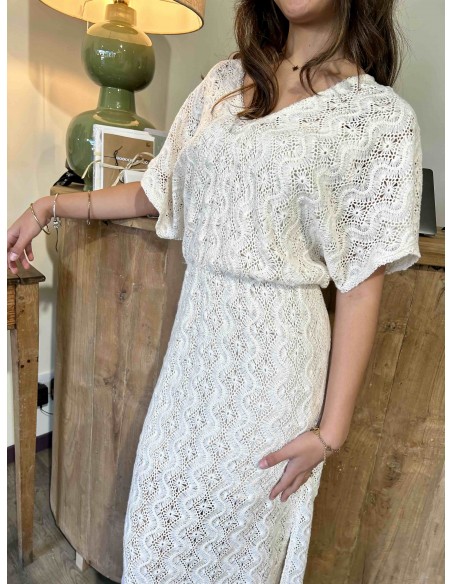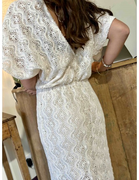 Cette robe écru de la marque Louizon dégage une élégance douce et naturelle, parfaite pour une allure à la fois romantique et estivale. Confectionnée dans une matière ajourée façon dentelle, elle laisse subtilement deviner la peau tout en restant délicate et raffinée.
